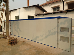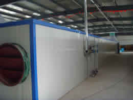 該干燥設備采用的是連續性烘干作業,主要有干燥室、烘干車、料盤、供風系統、熱風爐、自動電控系統等構成。干燥室采用金屬保溫板或磚混結構,烘干盤采用金屬或其他材料制作。