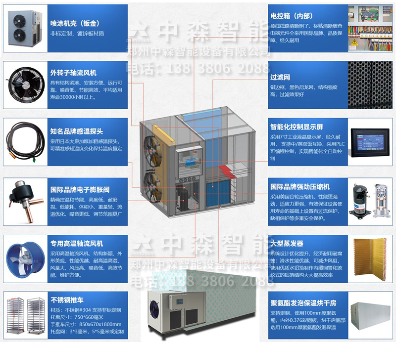 【系統(tǒng)配置】保溫烘房保溫箱體、推車、烘盤、電腦控制、熱風循環(huán)、智能排濕、自動補風等系統(tǒng)組成。