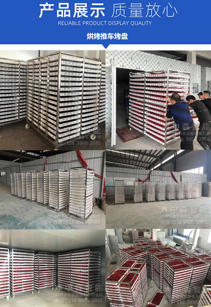 【系統配置】保溫烘房保溫箱體、推車、烘盤、電腦控制、熱風循環、智能排濕、自動補風等系統組成。