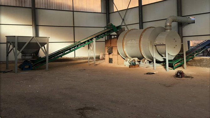 3、燃料可用煤、煙煤、煤矸石、油、汽。能烘20-40mm以下塊料、粒料、粉狀物料。出料溫度≤60度,可直接進料庫,蕪需進冷卻棚冷卻。
