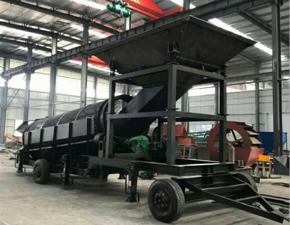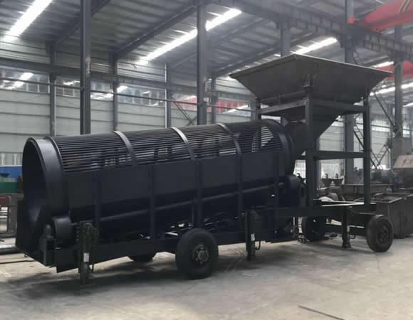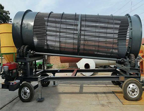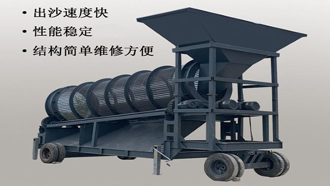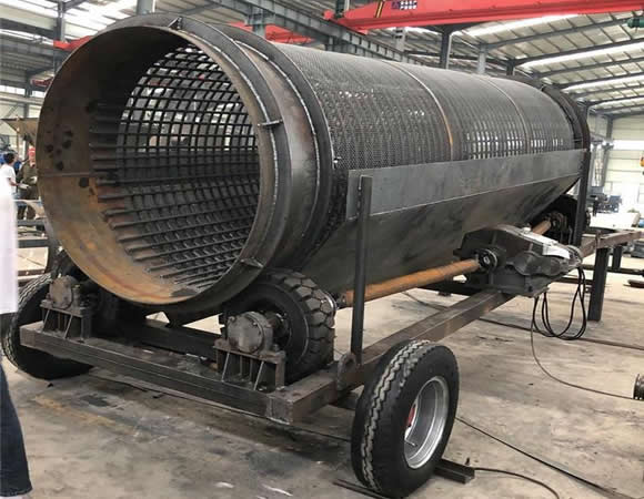 移動式砂石滾筒篩主要有電機、減速機、滾筒裝置、機架、密封蓋、進出料口組成。整體與地平面成傾斜狀態(tài),外部被密封隔離罩所密封,以防止污染環(huán)境。通過變速減速系統(tǒng)使篩分筒在一定轉(zhuǎn)速下旋轉(zhuǎn),物料自上而下通過篩分筒得到分離,細料從篩分筒前端下部排出,粗料從篩分筒下端尾部排出。
